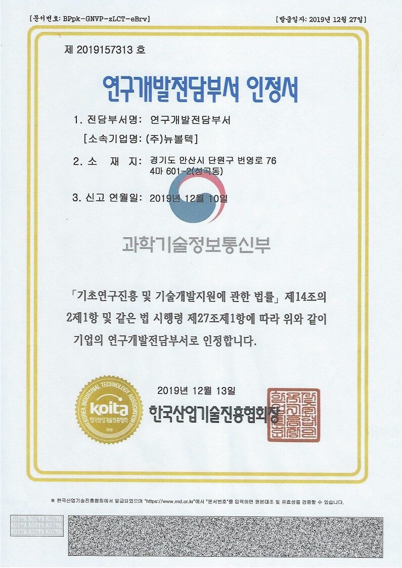 연구개발전담부서 인정서